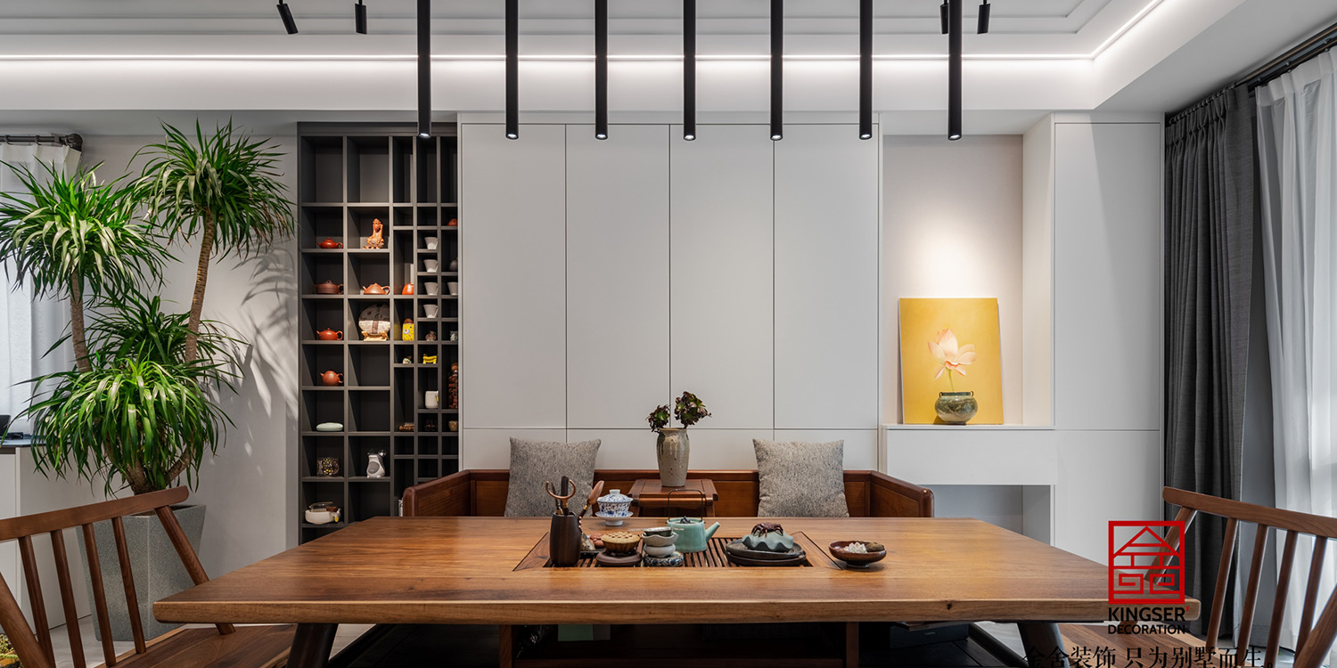 禪韻流水,樹影茶香,歸家后將喧囂的一切拋棄隔絕。整體空間利用合理,以實用性為前提,設計的真諦是走進生活